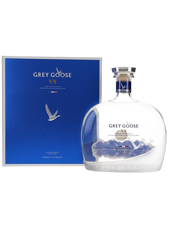 A litre bottle of Grey Goose VX Exclusive Edition Vodka, a mixture of vodka and Grande Champagne Cognac.