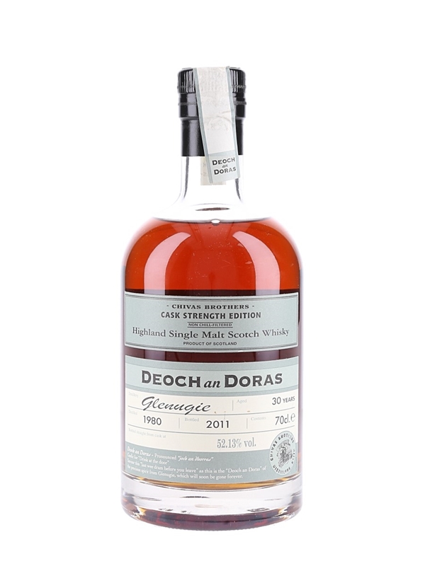 A bottle of Glenugie 30 Year Old. This was distilled in 1980 and bottled by Chivas Brothers in 2011 under the Deoch an Doras label.