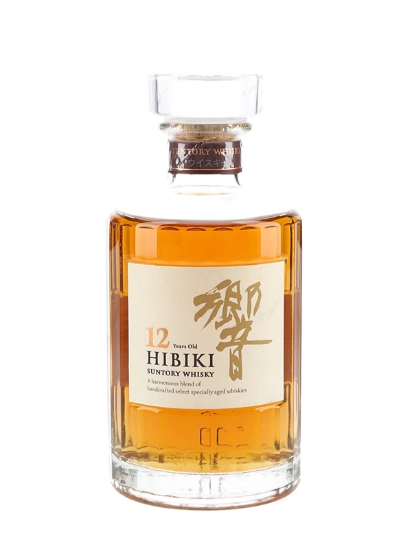A 50cl bottle of Hibiki 12 Year Old Suntory Whisky, a blend of specially aged whiskies.