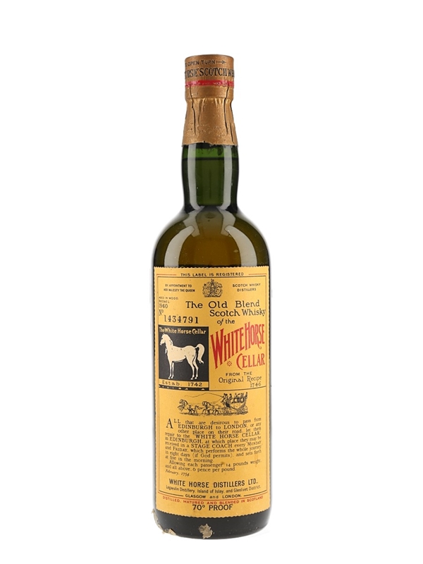 A bottle of White Horse Blended Scotch Whisky. This was bottled in 1960.