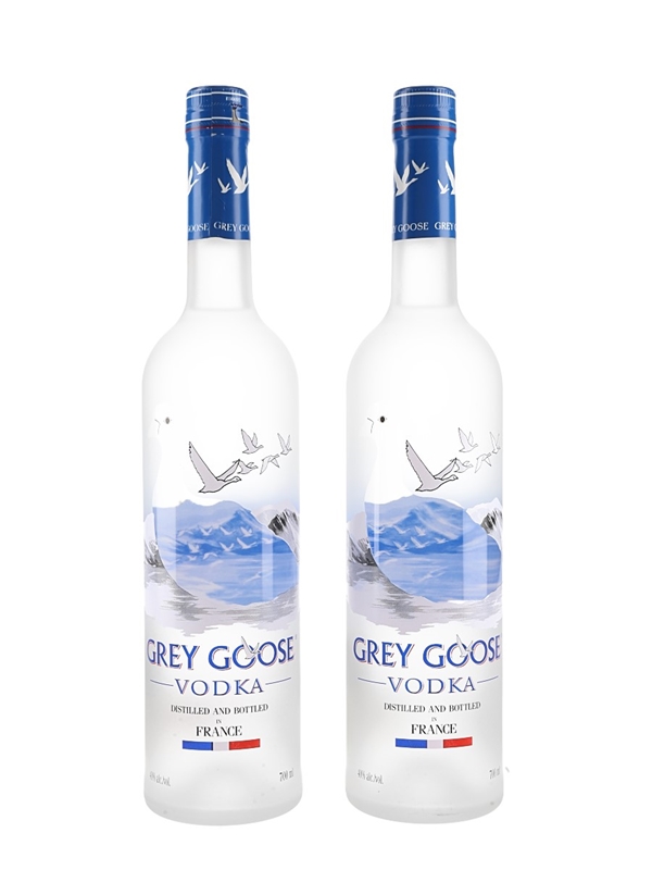 This lot contains two bottles of Grey Goose Vodka, distilled and bottled in France.