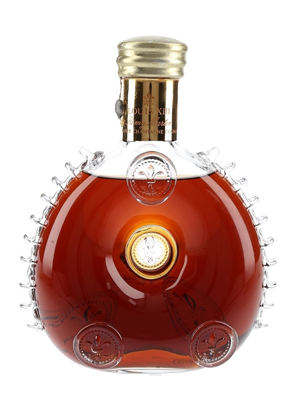A bottle of Rémy Martin Louis XIII Cognac, presented in a Baccarat crystal decanter with stopper. This is composed of Grande Champagne eaux-de-vie aged between 40 and 100 years. This originally for the Japanese market, we estimate in the 1990s.