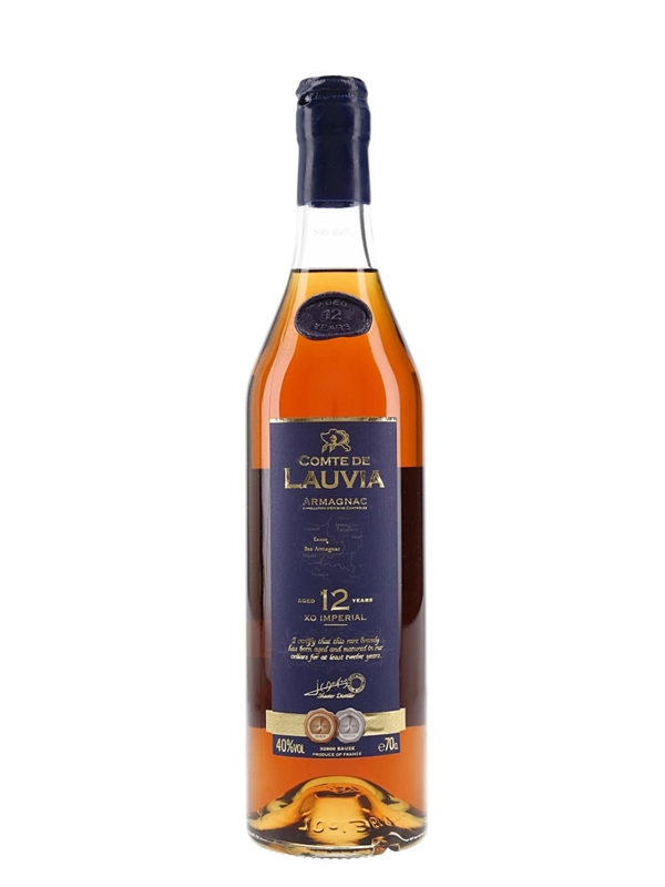 A bottle of 12 Year Old XO Imperial Armagnac produced by Comte De Lauvia.