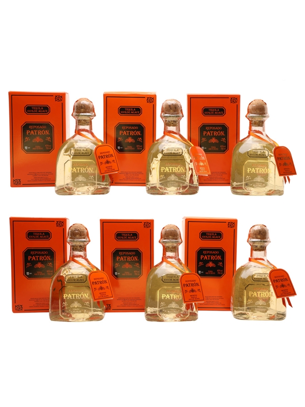 This lot contains six bottles of Patron Reposado, a premium Tequila made from 100% Weber blue agave.