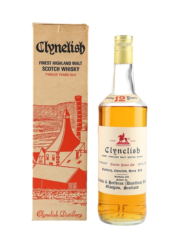 A bottle of Clynelish 12 Year Old Finest Highland Malt Scotch Whisky. This was bottled by the distillers Ainslie & Heilbron Ltd. we estimate in the 1970s.