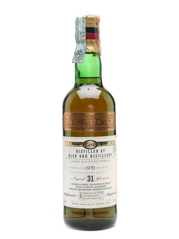 A bottle of Glen Ord 31 Year Old, bottled for Douglas Laing's Old Malt Cask range. This was distilled in August 1970, matured in a single cask, with a minimum of six months spent in sherry cask, and bottled in April 2002.