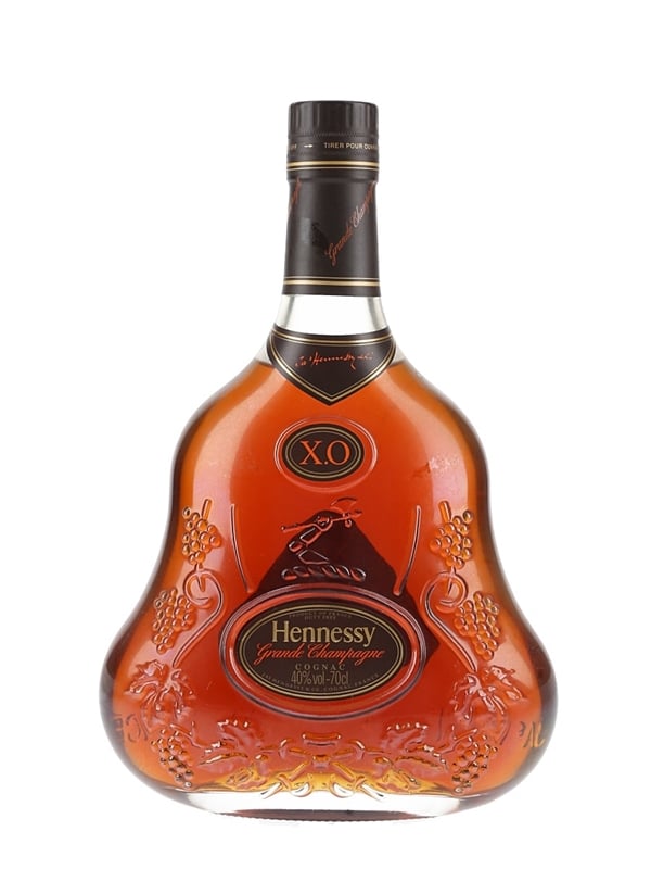 A bottle of Hennessy XO Grande Champagne Cognac. This expression was produced solely from grapes grown in the Grande Champagne region and was released in 1998 to commemorate 50 years of the XO bottle design.