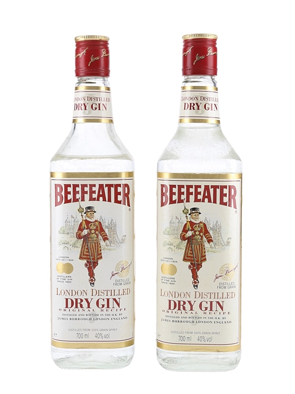 This lot contains two bottles of Beefeater London Dry Gin produced by James Burrough Limited. We estimate this was bottled in the 1990s.