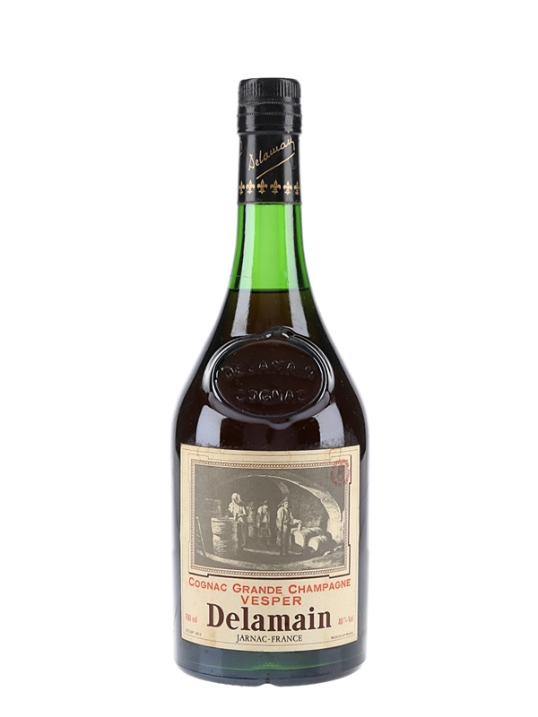 A bottle of Delamain Vesper Cognac, distilled from fruit grown in the Grande Champagne region. We estimate this was bottled in the 1980s.