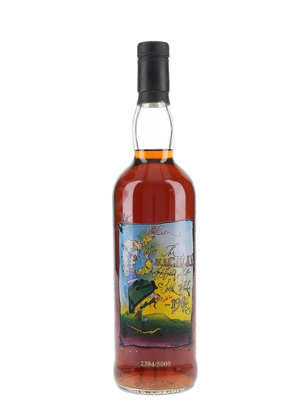 A bottle of The Macallan released in 1996 to celebrate the 35th anniversary of satirical magazine Private Eye. This is a vatting of casks selected by whisky maker FA Newlands and includes a cask from 1961, the year Private Eye was founded.