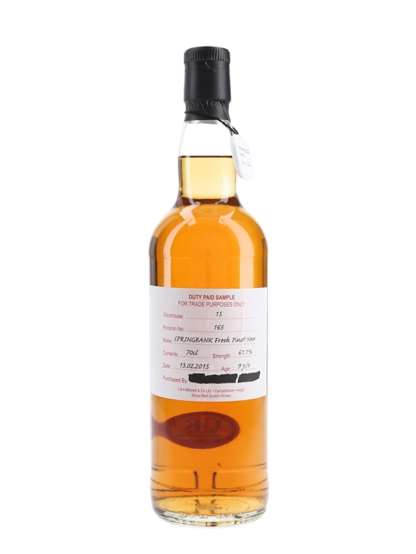 A Duty Paid Sample bottle of Springbank 9 Year Old Campbeltown Single Malt Scotch Whisky. This was distilled on 13 February 2015 and bottled by J. & A. Mitchell & Co. Ltd in 2024.