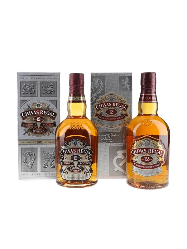 This lot contains two bottle of Chivas Regal 12 Year Old Blended Scotch Whisky, blended by Chivas Brothers Ltd.