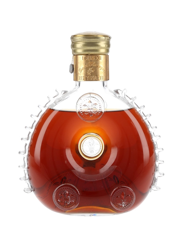 A bottle of Rémy Martin Louis XIII Cognac, presented in a Baccarat crystal decanter with stopper. This is composed of Grande Champagne eaux-de-vie aged between 40 and 100 years. We estimate this to be from the 1990s.