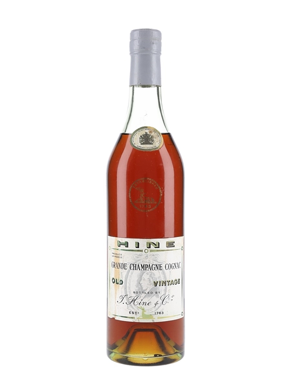 A bottle of Hine Old Vintage Grande Champagne Cognac.