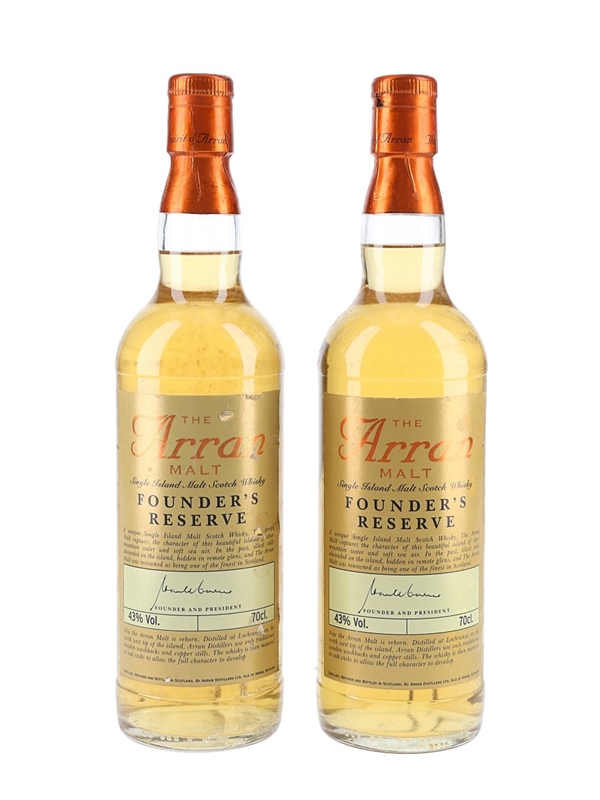 This lot contains two bottle of The Arran Malt Founder's Reserve Single Island Malt Scotch Whisky, bottled exclusively for shareholders of the Arran distillery.
