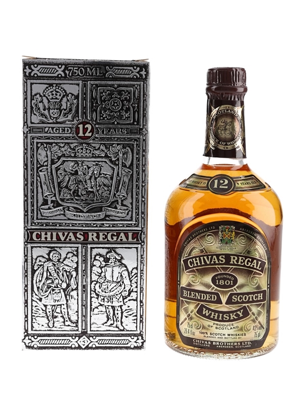 A bottle of Chivas Regal 12 Year Old Blended Scotch Whisky, blended by Chivas Brothers Ltd. This was bottled for Duty Free stores, we estimate in the 1980s.