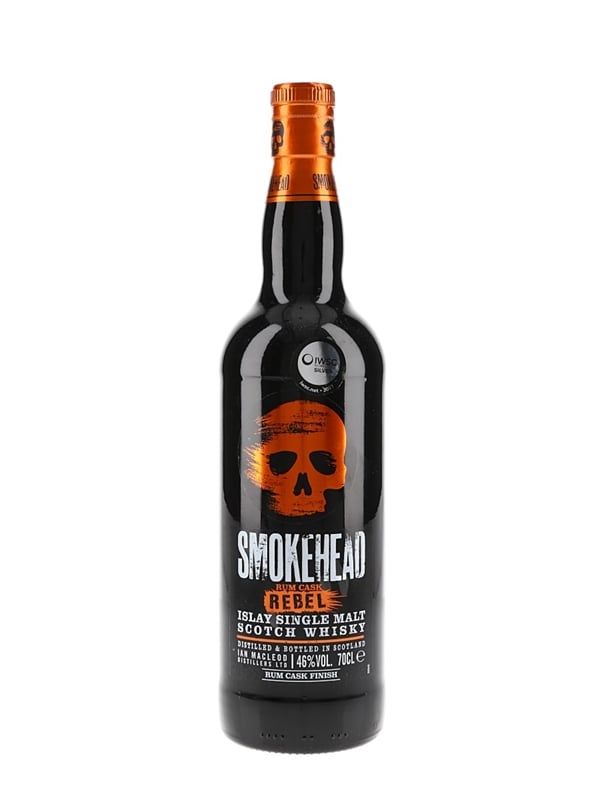 A bottle of Smokehead Rum Rebel Islay Single Malt Scotch Whisky from an undisclosed distillery, bottled by Ian Macleod Distillers.