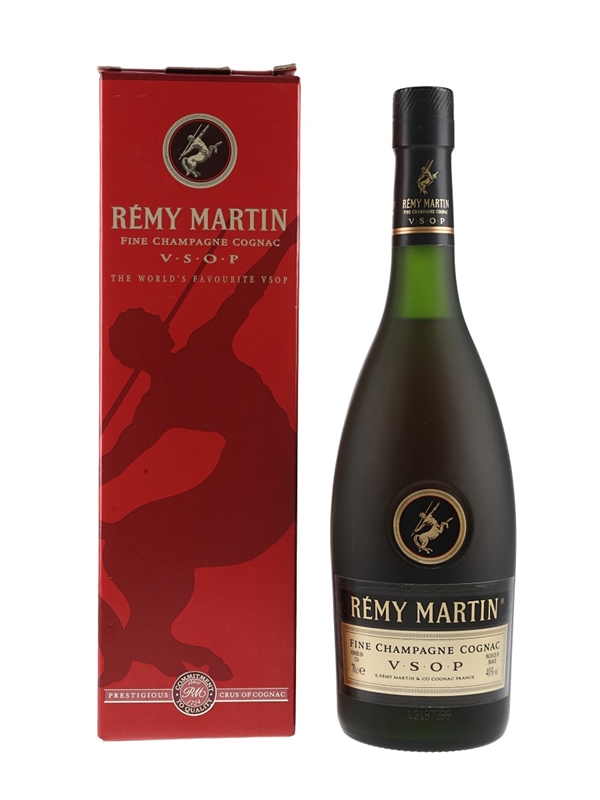 A bottle of Rémy Martin VSOP Fine Champagne Cognac. We estimate this was bottled in the 1990s.
