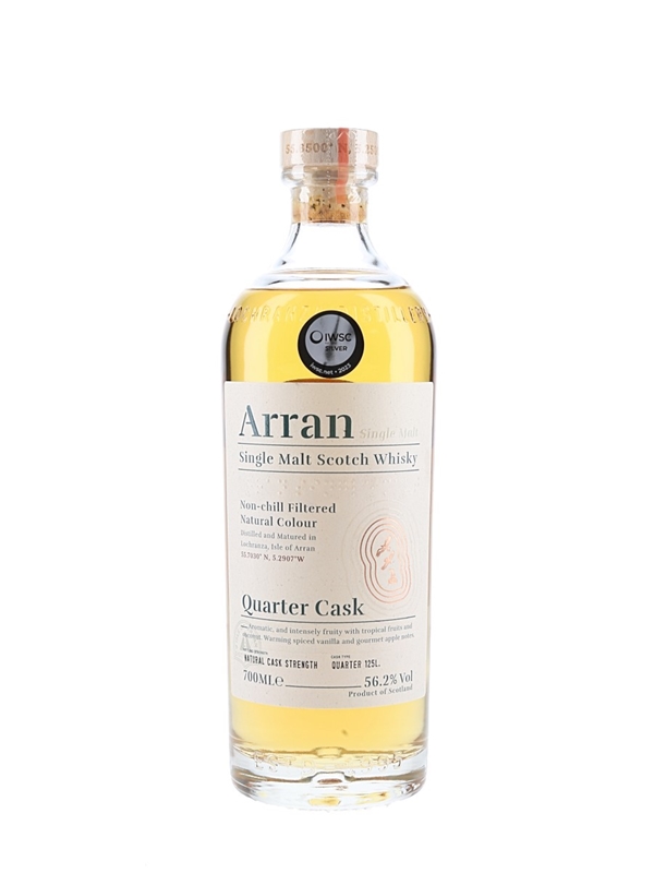 A bottle of Arran The Bothy Quarter Cask Single Malt Scotch Whisky. This was matured in 125 litre quarter casks and bottled at cask strength.