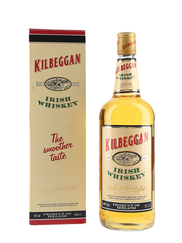 A bottle of Kilbeggan Finest Irish Whiskey.