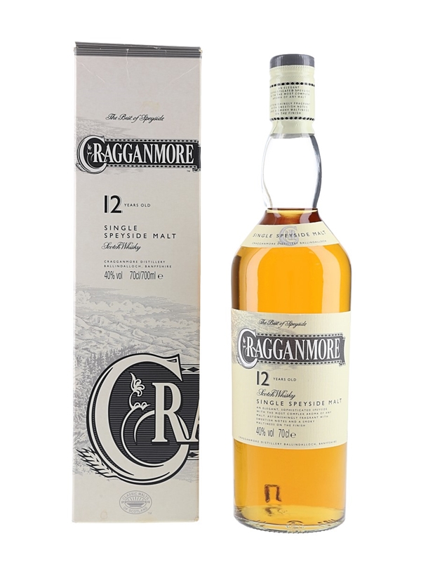 A bottle of Cragganmore 12 Year Old Single Speyside Malt Scotch Whisky, the Speyside representative in Diageo's Classic Malts collection.