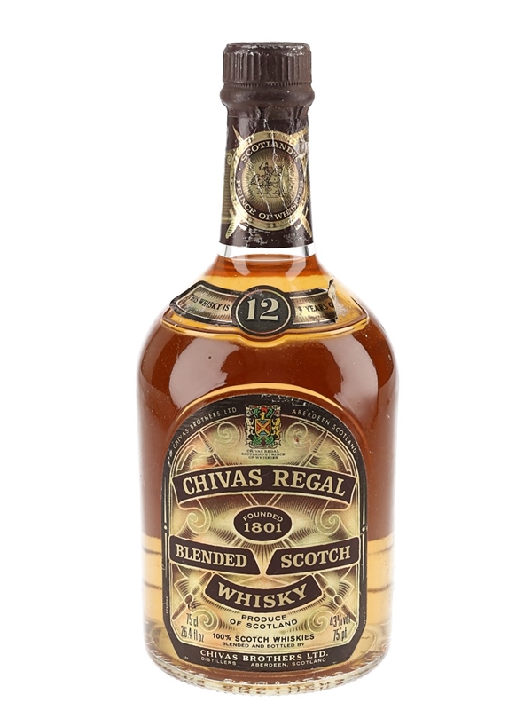 A bottle of Chivas Regal 12 Year Old Blended Scotch Whisky, blended by Chivas Brothers Ltd. We estimate this was bottled in the 1970s to 1980s.