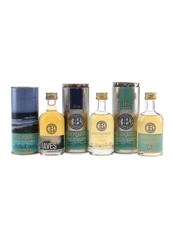 This lot contains three miniature bottles of Bruichladdich Wave 7 Year Old, 10 and 20 Year Old Islay Single Malt Scotch Whisky.