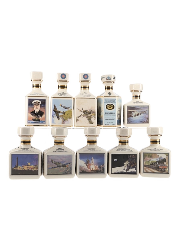 This lot contains ten ceramic decanter from the Pointers of London & Edinburgh.