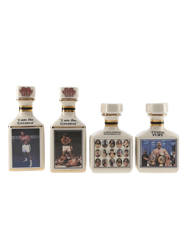 This lot contains 4 ceramic decanter depicting boxing greatest fighters from the Pointers of London & Edinburgh.