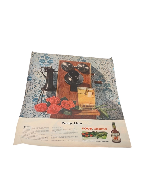 Four Roses Advertisement Print 1950 - Party Line 26cm x 36cm