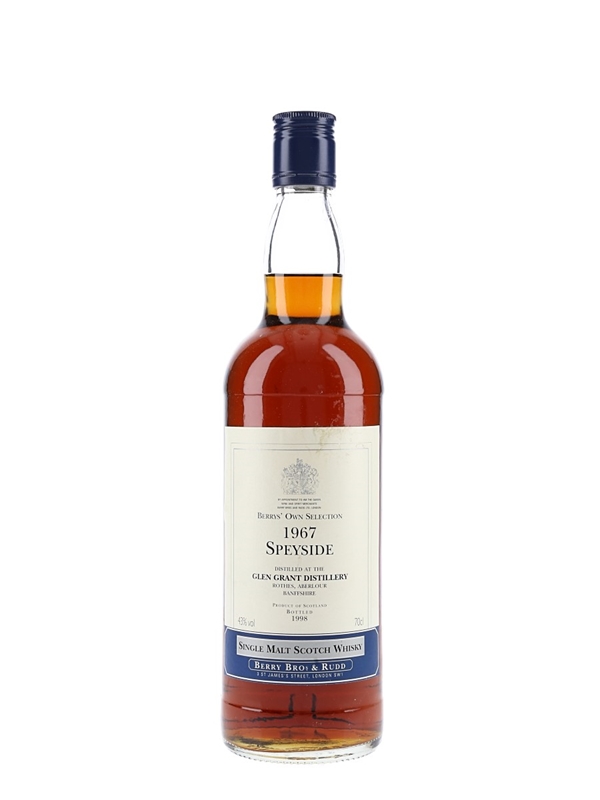 A bottle of Glen Grant 1967, bottled at 43% ABV in 1998 by Berry Bros & Rudd for the Berry's Own Selection series.