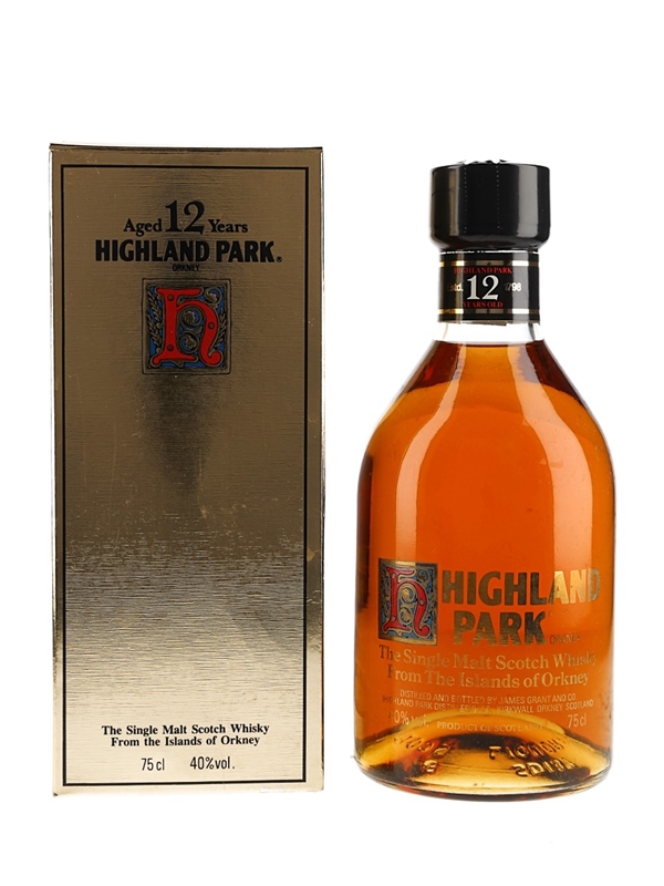 A bottle of Highland Park 12 Year Old Single Malt Scotch Whisky from Orkney, distilled and bottled by James Grant and Co. We estimate this was bottled in the 1980s.