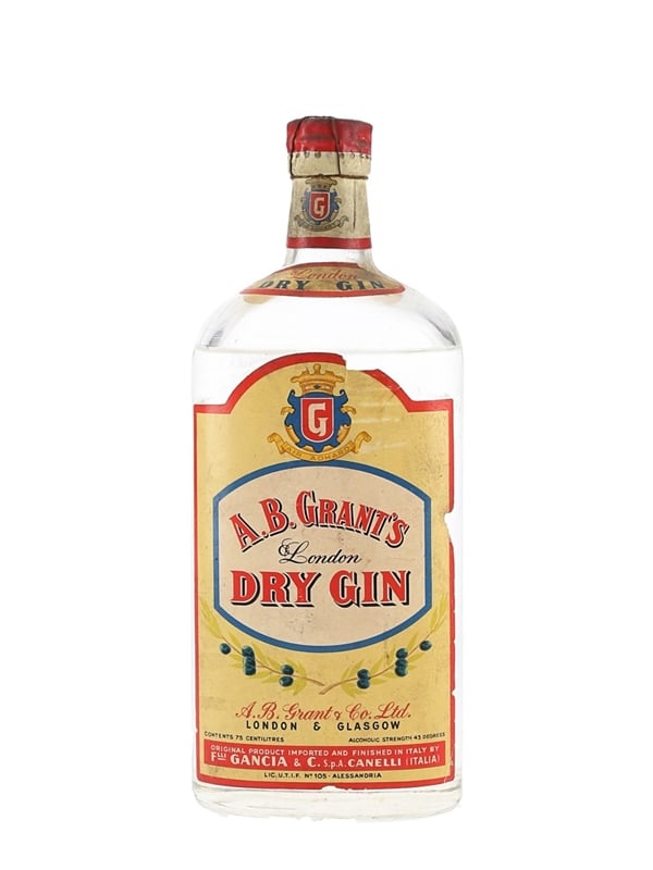 A bottle of A B Grant's London Dry Gin sealed with a spring cap closure. This was imported and finished in Italy by Gancia. We estimate this was bottled in the 1950s.