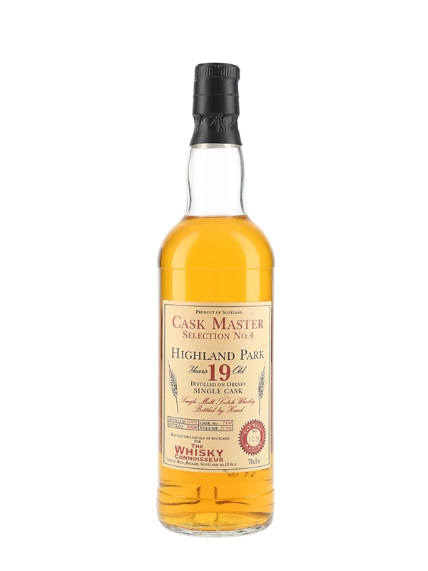 A bottle of Highland Park 19 Year Old Single Malt Scotch Whisky. This was distilled on 12 October 1977, bottled at 57.9%ABV on 26 June 1996 by Cask Master for the Whisky Connoisseur's Selection No4.