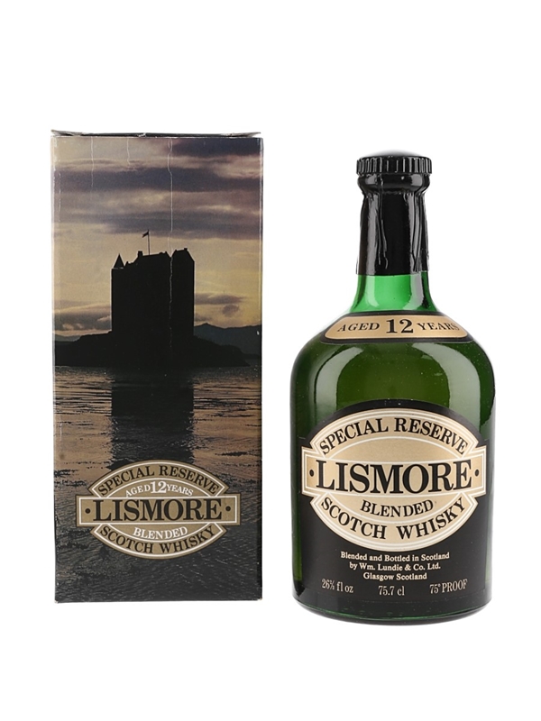 A bottle of Lismore 12 Year Old Special Reserve Finest Blended Scotch Whisky blended and bottled by William Lundie and Co. Ltd. for the Wardell Services Group. We estimate this was bottled in the late 1970s to early 1980s.