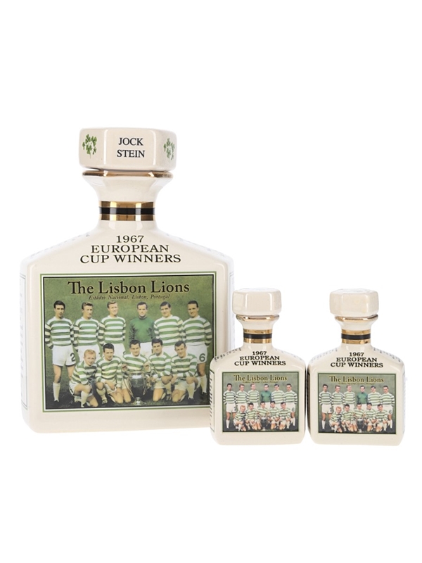 A ceramic decanter and miniature from Pointer's of London & Edinburgh, released in 2017 to commemorate Celtic football club's 1967 European Cup win as The Lisbon Lions. This is bottle number 150 of 500.