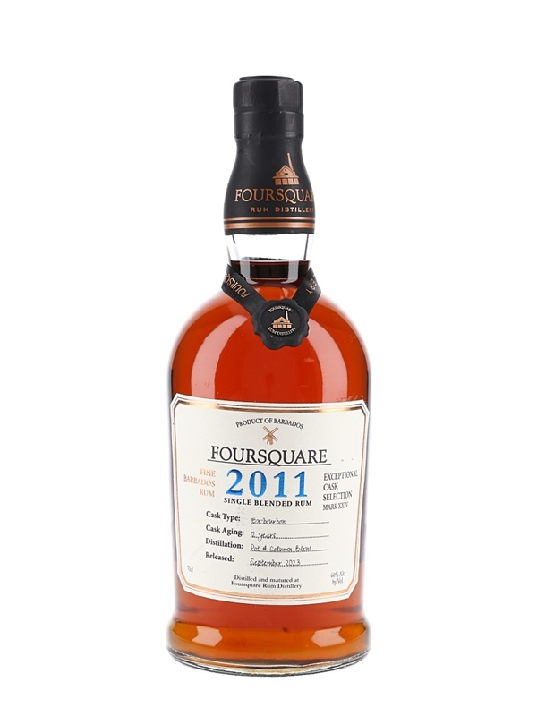 A bottle of Foursquare 2011 12 Year Old Fine Barbados Single Blended Rum. This was matured in a combination of ex-bourbon casks for 12 years, bottled at a cask strength of 60% ABV and released in September 2023 for Exceptional Cask Selection Mark XXIV.