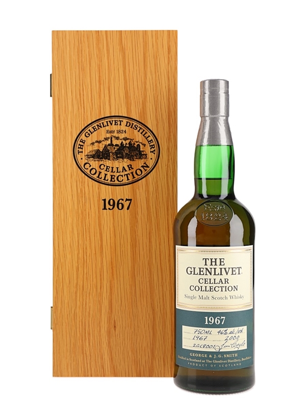 A bottle of The Glenlivet Single Malt Scotch Whisky. This was distilled in 1967, matured for 33 yeards before bottling at 46% ABV in 2000 for the Cellar Collection.