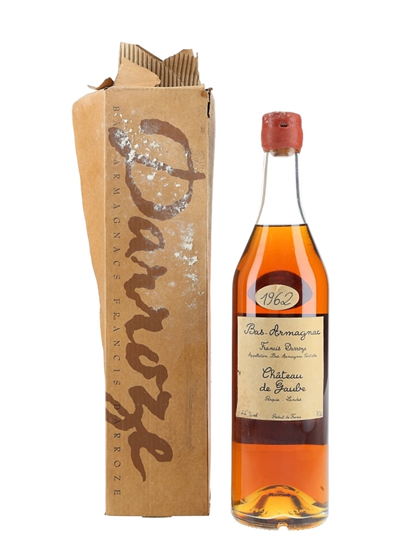 A bottle of 1962 Bas Armagnac fChateau de Gaube. This was bottled by negociants Darroze in June 2007.