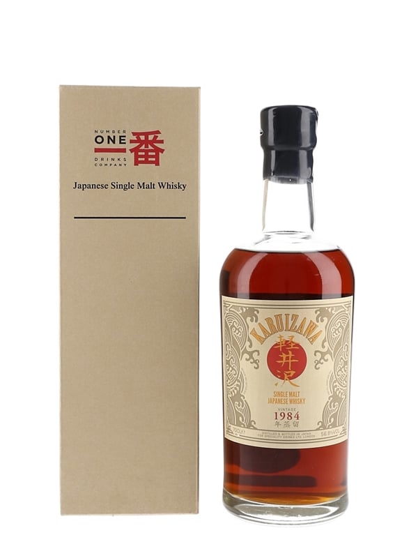 A bottle of Karuizawa Single Malt Japanese Whisky. This was distilled in 1984, matured in a first fill sherry cask, and bottled in 2013 by Number One Drinks Company for Speciality Drinks Ltd.