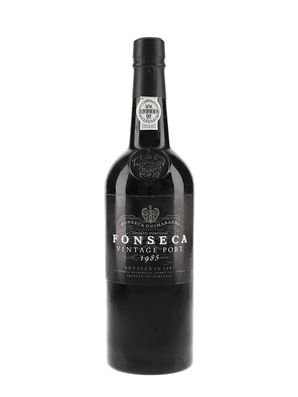A bottle of Fonseca's 1985 Vintage Port, bottled in 1987 by Fonseca Guimaraens Vinhos.