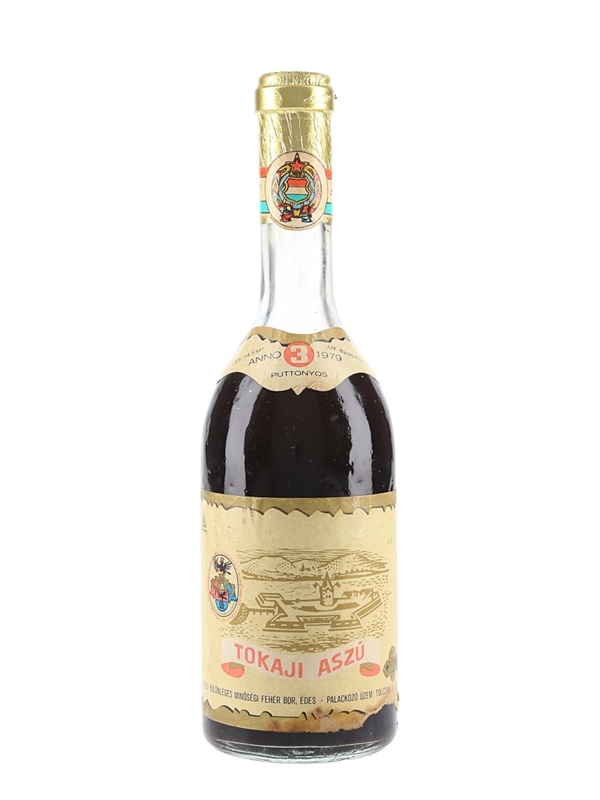 A 50cl bottle of 1979 Tokaji Aszu 3 Puttonyos bottled by Tokajhegyalja State Winery and exported by Monimpex.