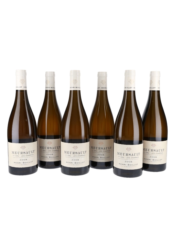 This lot contains six bottles of 2008 Meursault Premier Cru Les Charmes, bottled by Henri Boillot in Meursault, France.