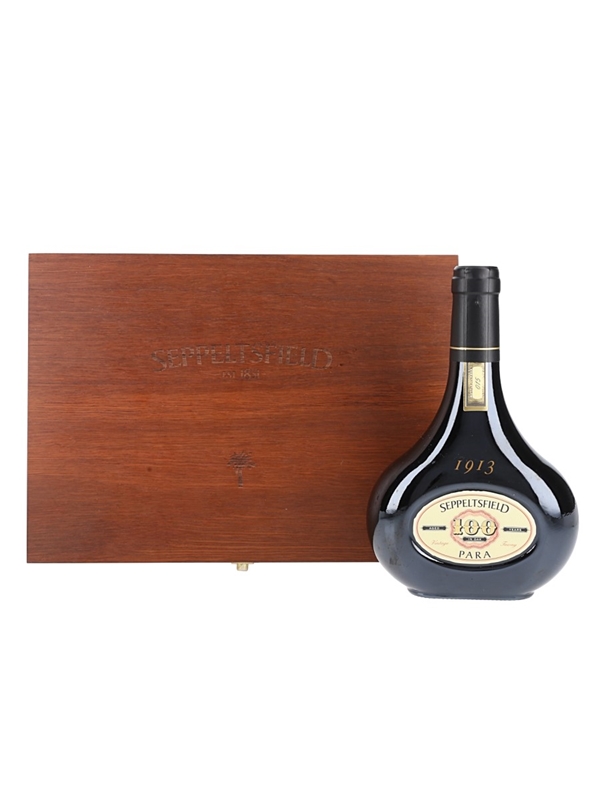 A bottle of 1913 Seppeltsfield Vintage Para Tawny aged for 100 years in oak and bottled at 21.2% ABV.