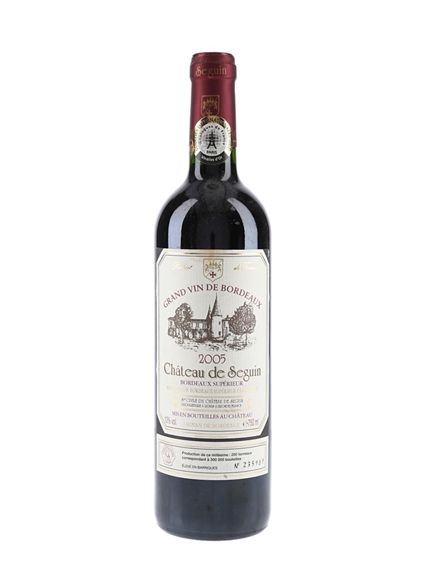 A bottle of 2005 Chateau De Seguin Grand Vin De Bordeaux from the Bordeaux Superior appellation.