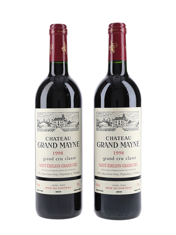 This lot contains two bottles of 1998 Château Grand Mayne, Grand Cru Classé wine from the Saint-Emilion appellation. The estate is planted with 80% Merlot and 20% Cabernet Franc, and produces around 48000 bottle a year.