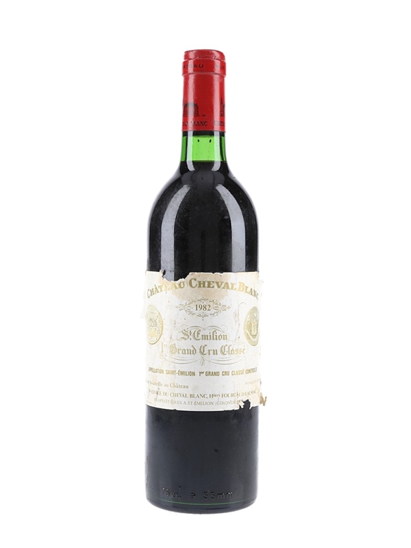 A bottle of 1982 Château Cheval Blanc Saint-Emilion 1er Grand Cru Classé.