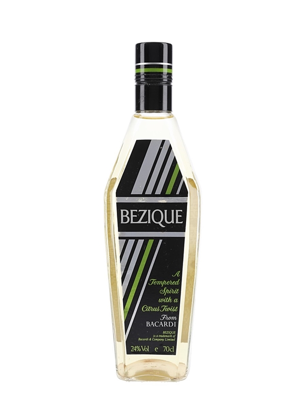 A bottle of Bacardi Bezique, A Tempered Spirit With A Citrus Twist, produced in Brazil. This was distributed in the United Kingdom by Hedges & Butler Ltd., we estimate in the 1990s.