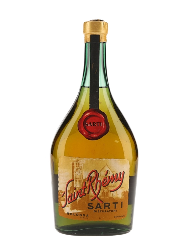 A bottle of Saint Rhémy liqueur produced by Sarti, Bologna, from herbs and flowers found in Italy's Aosta Valley. We estimate this was bottled in the 1950s.