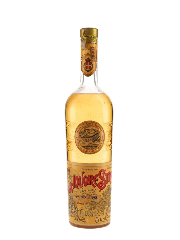 A litre bottle of Liquore Strega, an Italian digestif flavoured with saffron and around 70 other herbal ingredients produced in Benevento by Strega Alberti. We estimate this was bottled in the 1950s.